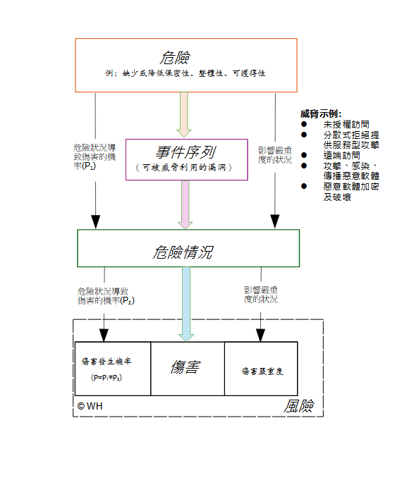 危險、事件順序、危險情況和與資訊保全有關的傷害之間的關係如圖 F.1 所示。